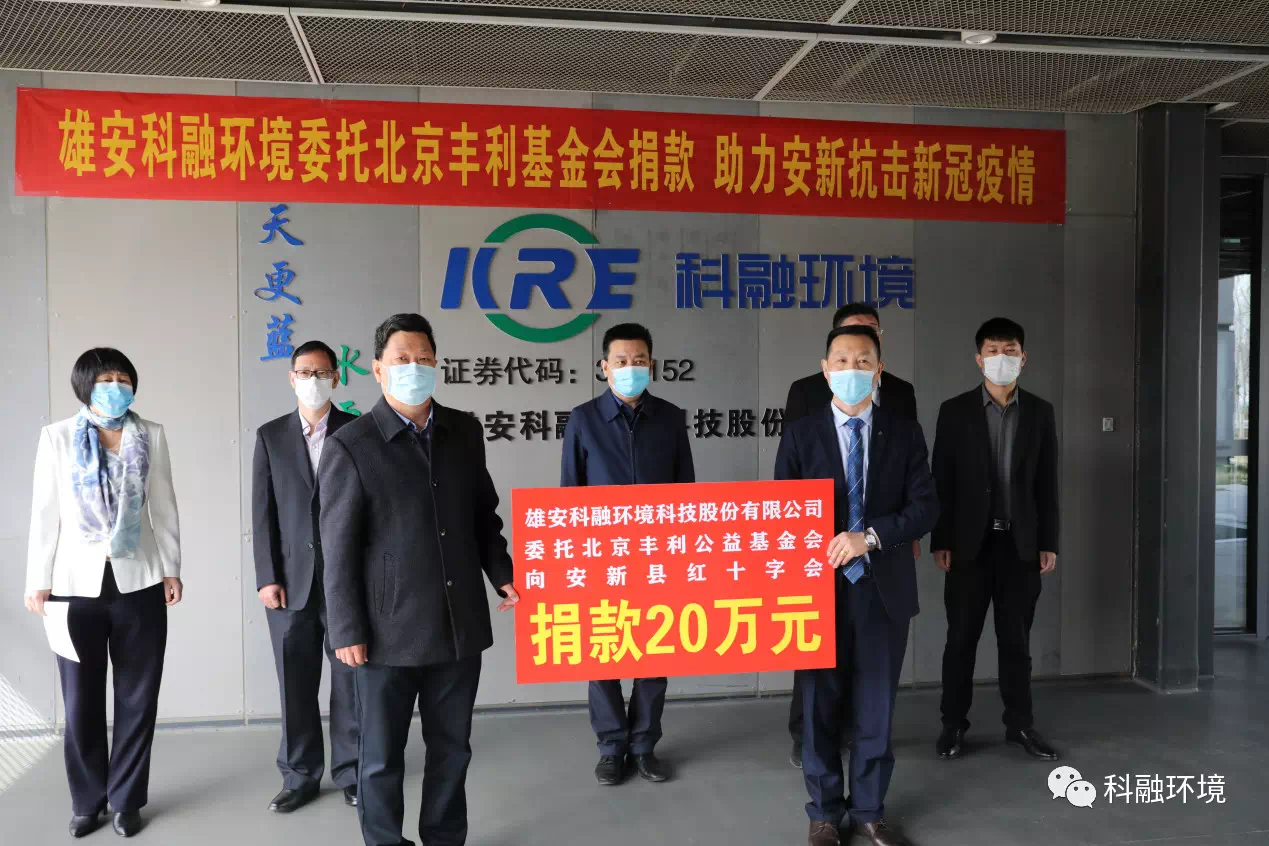 同心抗“疫”,我们一直在行动!新冠肺炎疫情爆发以来,雄安科融环境科技股份有限公司(以下简称“科融环境”)积极履行社会责任,通过北京丰利公益基金会(以下简称“基金会”)定向捐赠人民币360万元专项基金,用于驰援湖北省、河北省和雄安新区的新型冠状病毒感染的肺炎疫情的防范工作。3月20日上午,雄安科融环境科技股份有限公司委托北京丰利公益基金会,向安新县红十字会捐赠防疫资金20万元,用于疫情防控工作。县委书记刘彦涛、县政府副县长郝顺清、卫健局副局长赵小东、科融环境董事长毛军亮、北京丰利公益基...